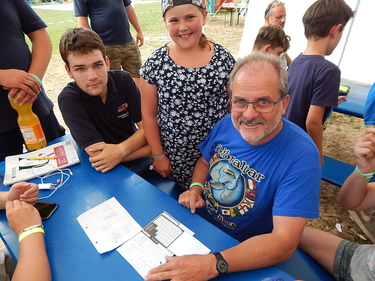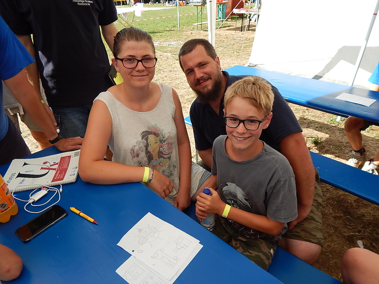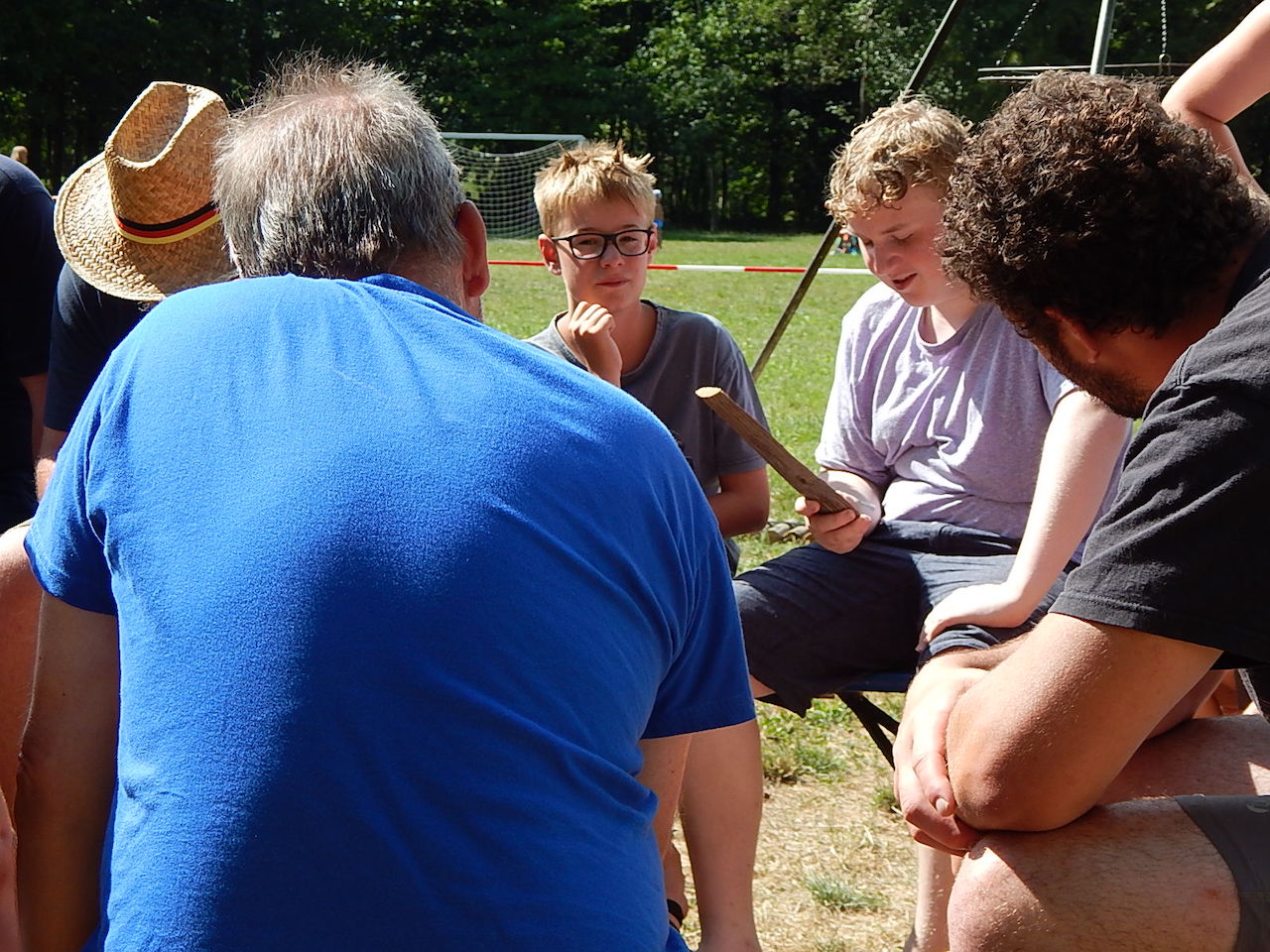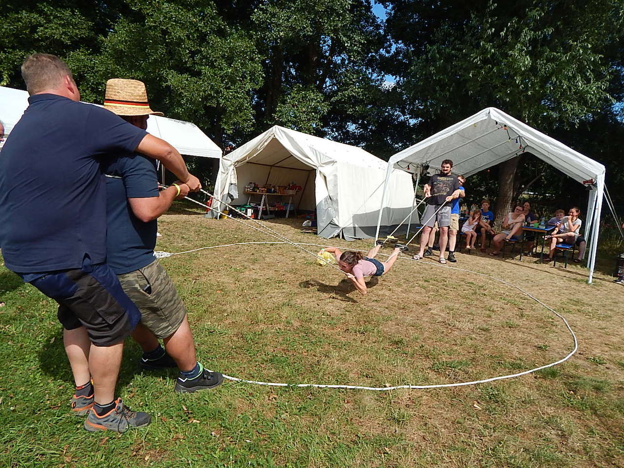 Pünktlich um 7.00 Uhr läutet die Frühstücksglocke, alle stürzen aus den Zelten. Naja, vielleicht nicht „stürzen“, sondern eher „krabbeln“. Aber wie auch immer – kurz darauf sitzen alle am gedeckten Tisch und lassen sich das zeltlagertypische Frühstück schmecken.