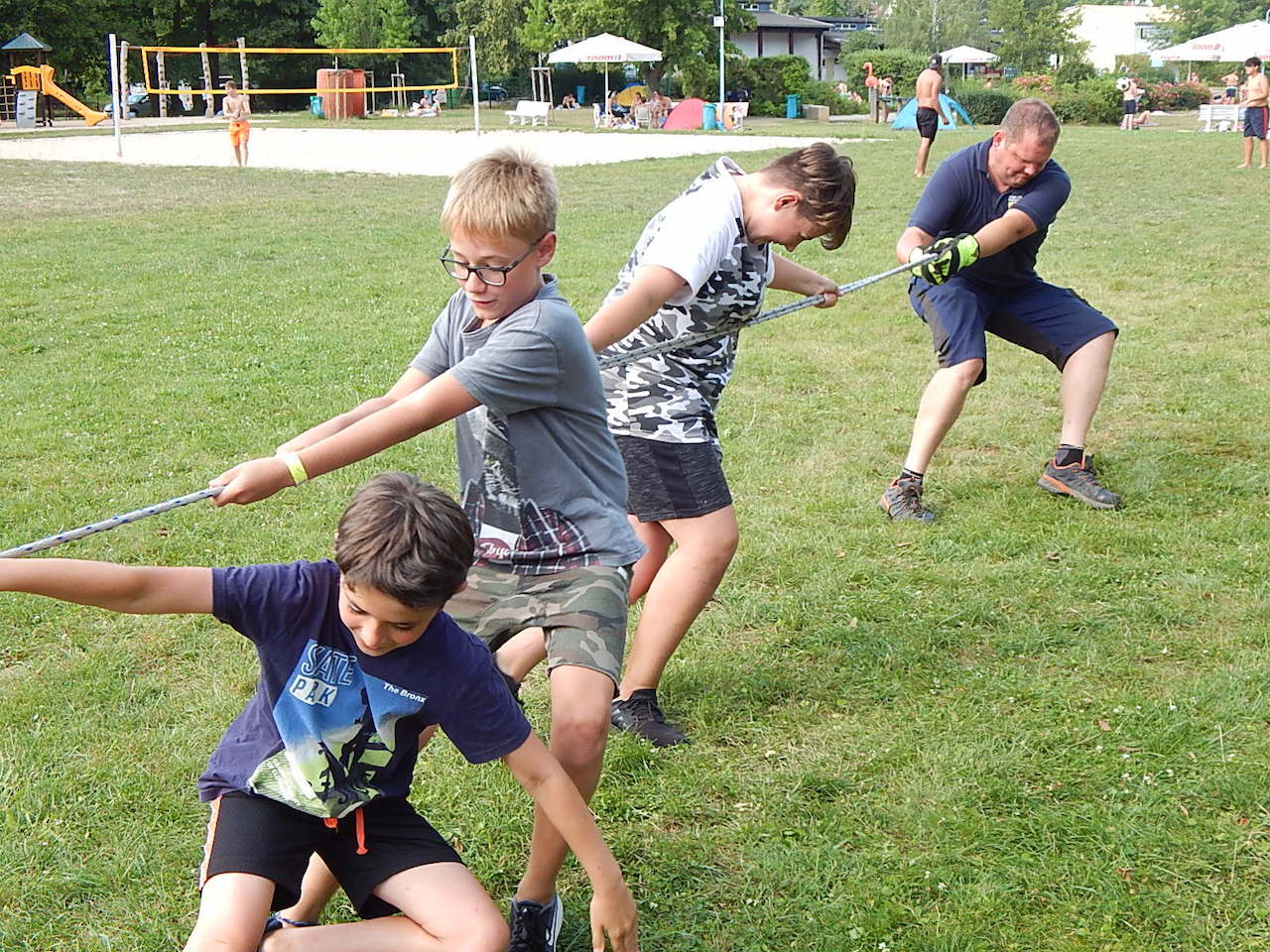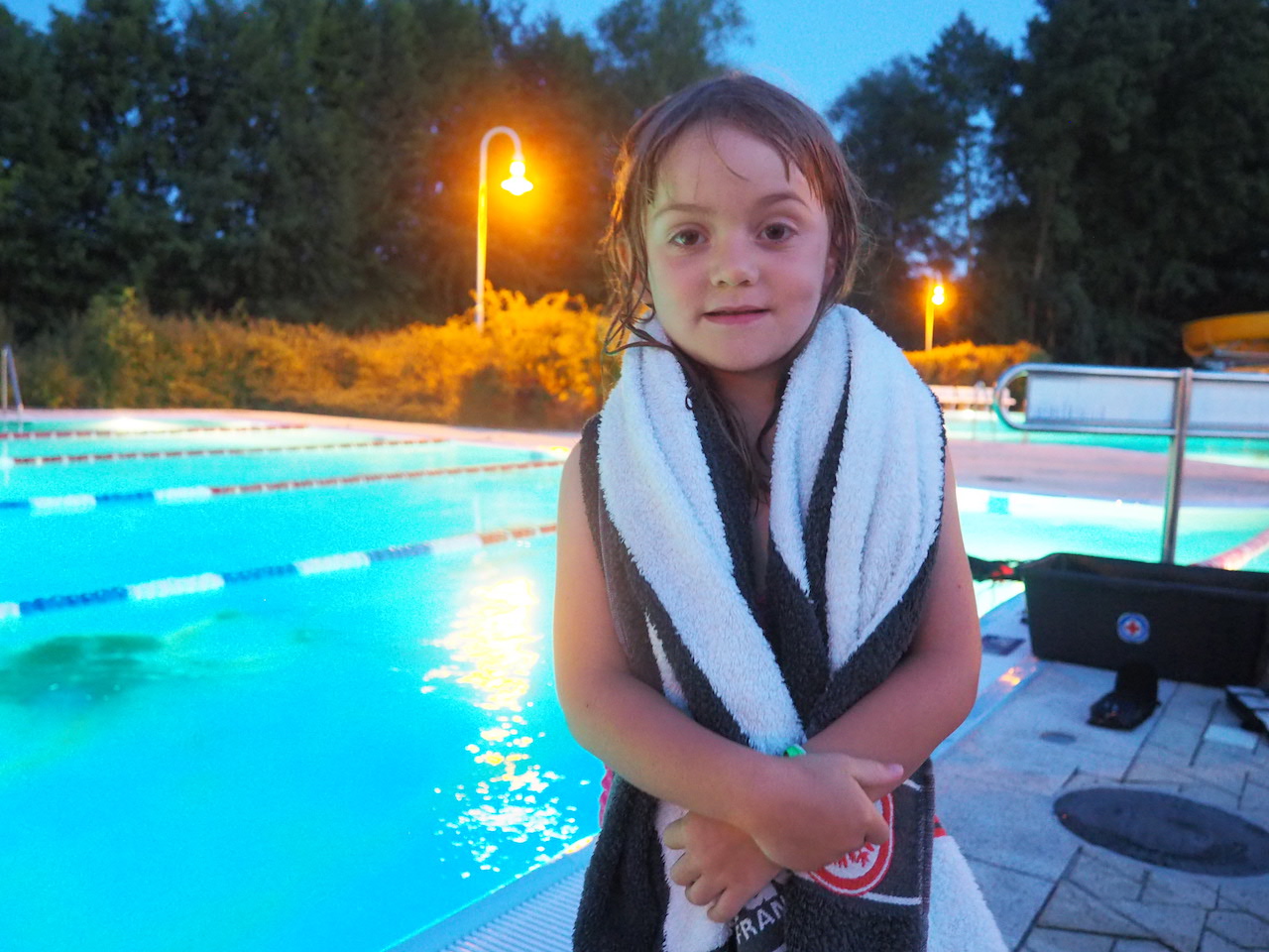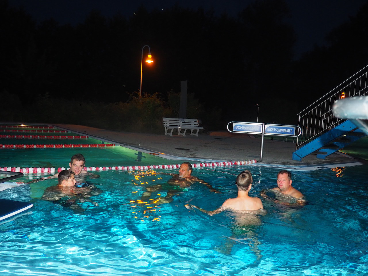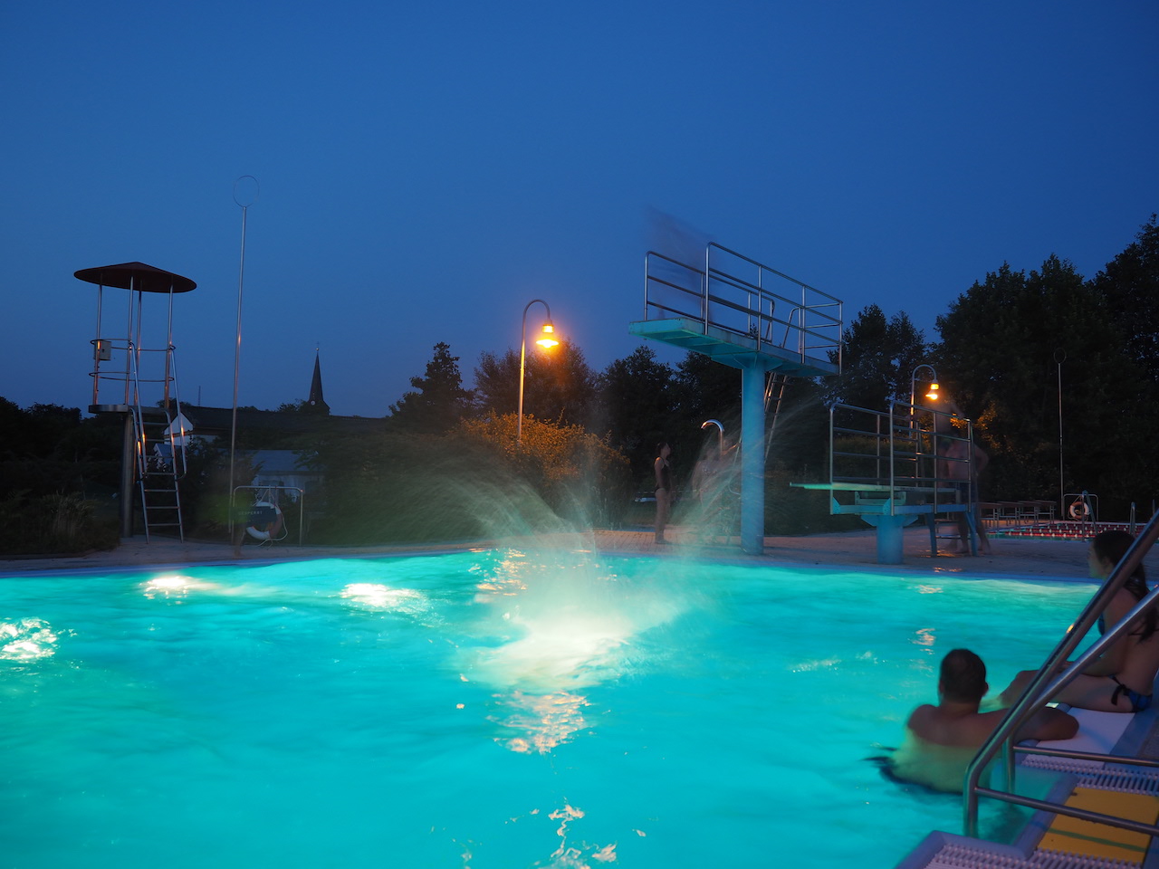 Wie gesagt – wir stehen jetzt bei rund 17.500 Schritten. Und damit wird es Zeit für etwas Abkühlung. Wir nutzen also erneut die exklusive Möglichkeit des Nachtbadens und machen sowohl die Rutschen als auch die Sprungtürme unsicher, bevor es dann mit Stockbrot am Lagerfeuer immer leiser im Lager wird und die vorletzte Nacht unseres Zeltlagers beginnt.
