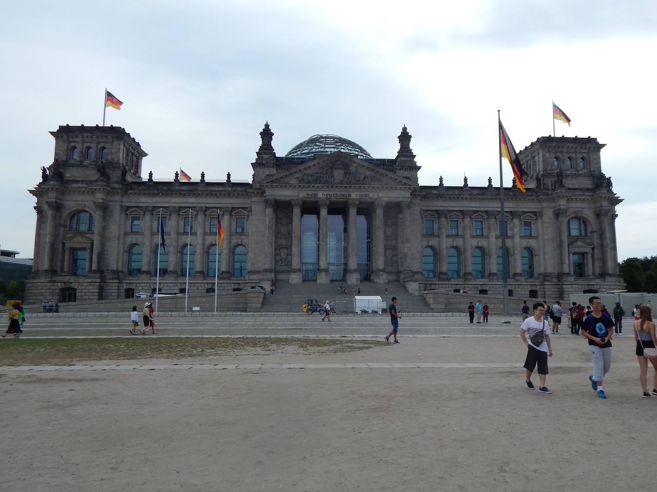 Von dort aus machen wir uns nun auf den etwa 20 Minuten dauernden Weg zum Reichstag, wo wir für 10.00 Uhr den Besuch der Kuppel und der Dachterrasse gebucht haben. Im Vorfeld mussten wir hierzu bereits die persönlichen Daten der Teilnehmer übermitteln, vermutlich damit genügend Zeit für einen entsprechenden Sicherheitscheck blieb (ob jeder ist, wer er vorgiebt). Das Zeitmanagement stimmt – und so sind wir nach einem kurzen Security (wie am Flughafen) auf dem Weg zur Kuppel.