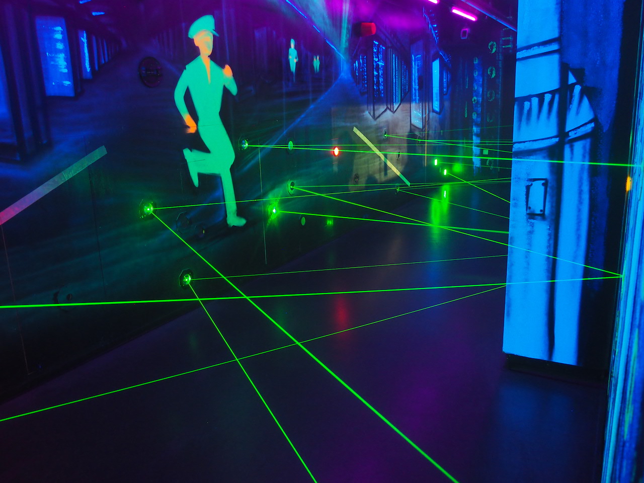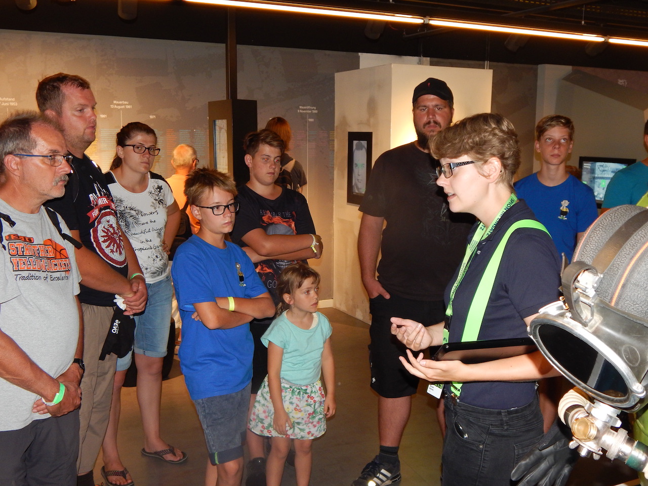 Nun noch das obligatorische Gruppenfoto und weiter geht’s zum nächsten Programmpunkt. Vorbei am Denkmal für die verfolgten und ermordeten Juden im Nationalsozialismus geht es zum Spionagemuseum am Potsdamer Platz. Hier haben wir nun noch etwas Zeit, um uns mit unseren Lunchpaketen zu beschäftigen, bevor wir dort eine knapp einstündige Führung durch das Museum erhalten. Wir hörten etwas über Spionagetechnik, über Verschlüsselung, die Sicherheit von Passworten, sehen das eine oder andere aus der Stasi-Vergangenheit der DDR und haben anschließend ausreichend Zeit zum Ausprobieren und Mitmachen. Sei es bei der Absolvierung eines Parcours durch Laserstrahlen, das eine oder andere witzige „Spion-Foto“ oder das Absuchen eines Raums nach Wanzen.